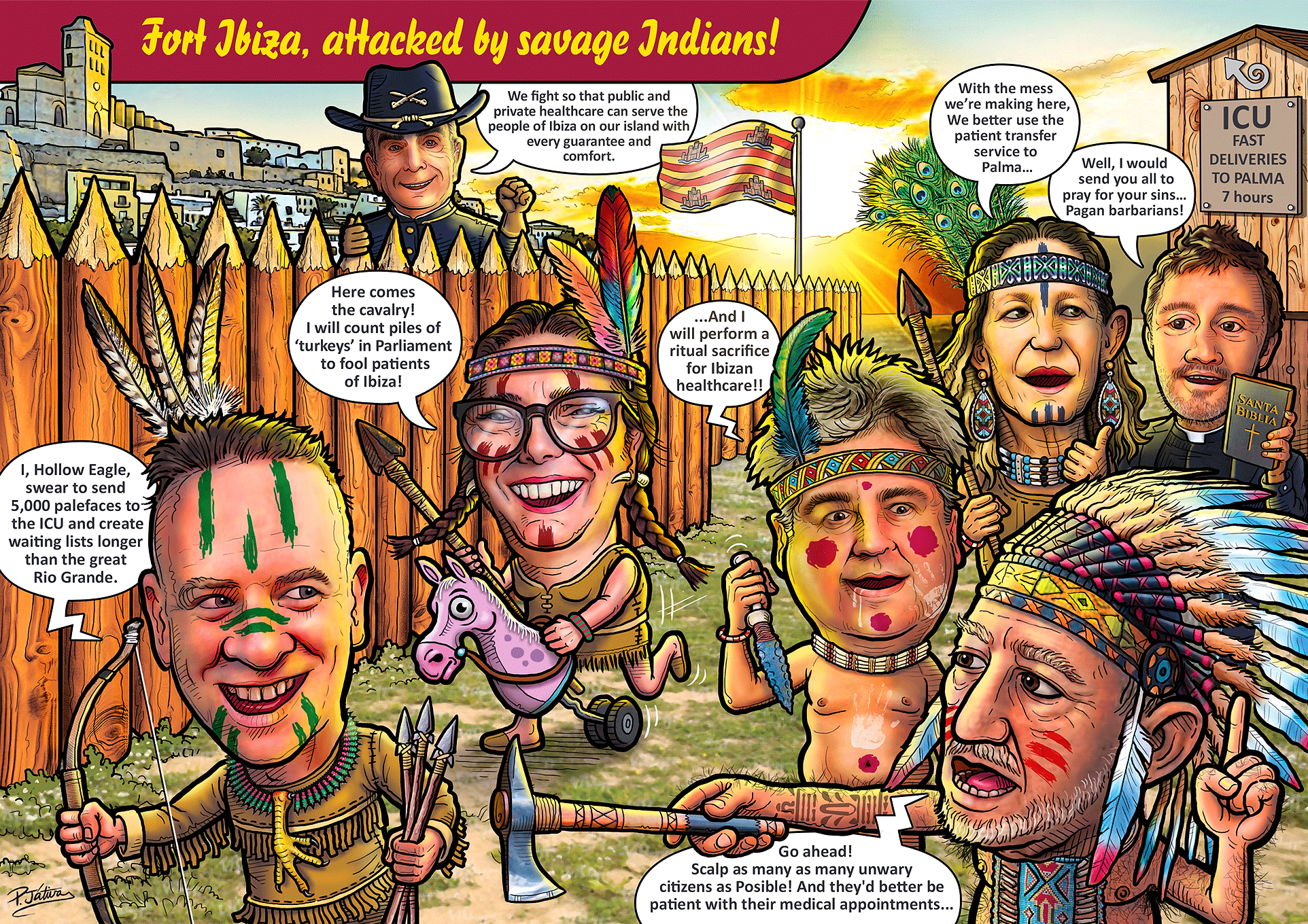 This piece is part of Caricaturasibiza, an independent satirical project launched in 2013, aimed at generating critical reflection through humor while maintaining a refined digital illustration finish.